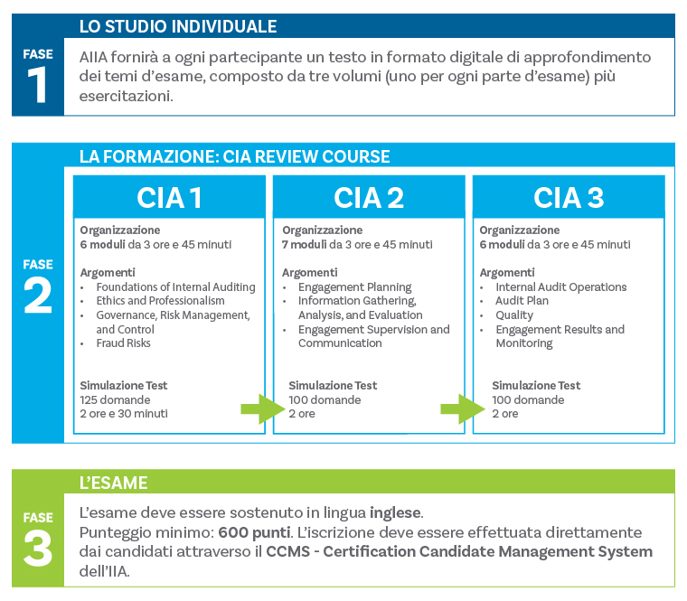 il programma IAP prevede un esame equiparato all’esame Parte 1 CIA per ottenere una credenziale permanente che attesta le conoscenze e competenze base di un Internal Auditor. Entro quattro anni dall’ottenimento del titolo IAP, i candidati possono ottenere la Certificazione CIA superando la Parte 2 e 3 d’esame CIA.